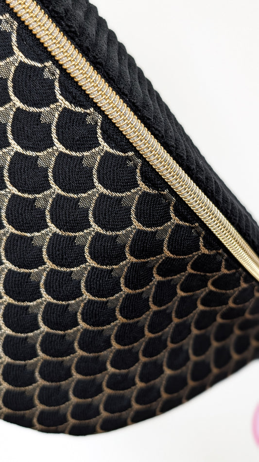 Edle Hipbag Cord Bauchtasche Schwarz/Gold Drachenschuppen
