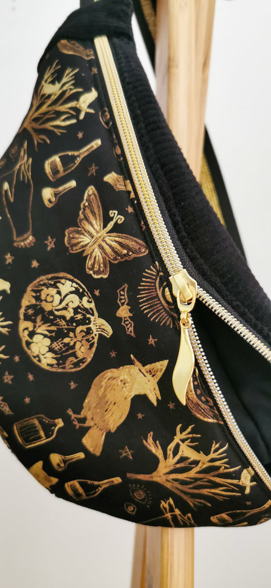 Hipbag Bauchtasche Crossbody Bag Schwarz GOLD Halloween Witch