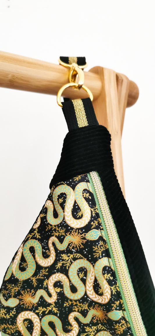 Schwarze Cord Hipbag Bauchtasche Cross Body Bag Schlangen Gold - Limitiert