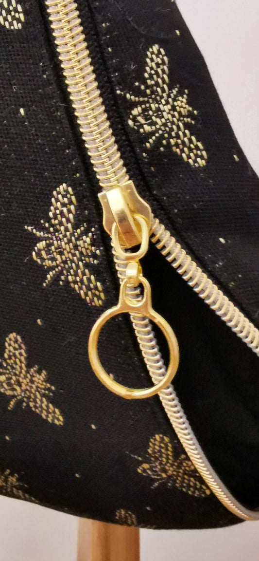 Edle Hipbag Cord Bauchtasche Schwarz/Gold Bienen