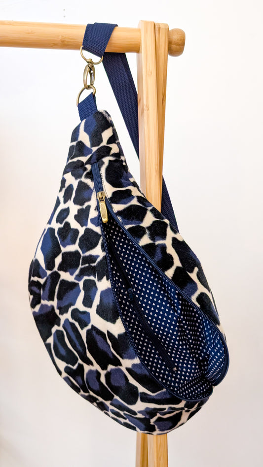Elegante XL Bauchtasche Plüsch Abstrakt Beige Blau