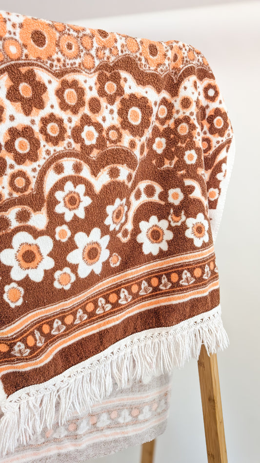 Upcycling XL Bauchtasche mit Fransen aus 70s Vintage Handtuch Towel Bag Einzelstück
