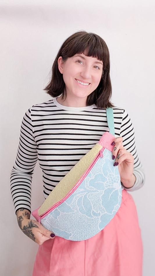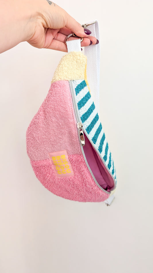Upcycling XL Bauchtasche aus Vintage Handtuch Pastell Towel Bag Einzelstück