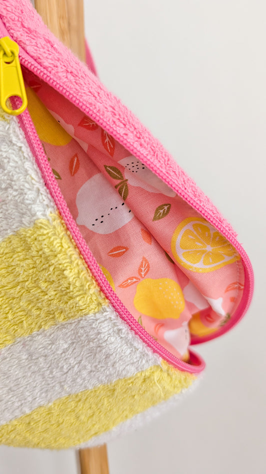 Upcycling Hipbag Bauchtasche aus Vintage Handtuch Gelb/Pink Streifen Towel Bag Limitiert