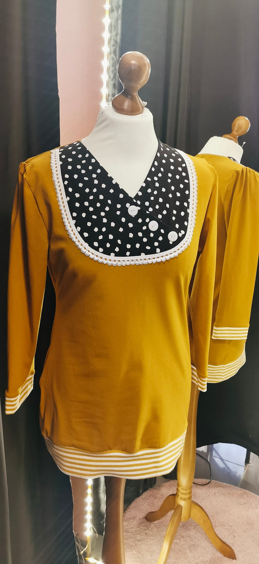 AusverkauftSenfgelbes 3/4 Rockabilly Longsleeve mit Punkten