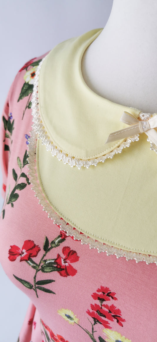 Babydoll Shirt mit Wildblumen und Bubikragen Rosé