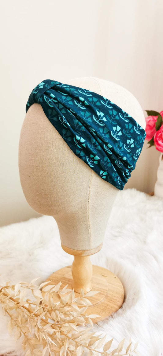 AusverkauftStirnband mit 70s Tulpen Muster Petrol/Mint