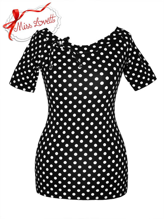 Schwarzes Polkadot Shirt Raglan Rockabilly