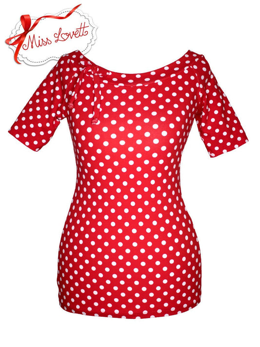 Rockabilly Raglan Shirt Big Dots ROT