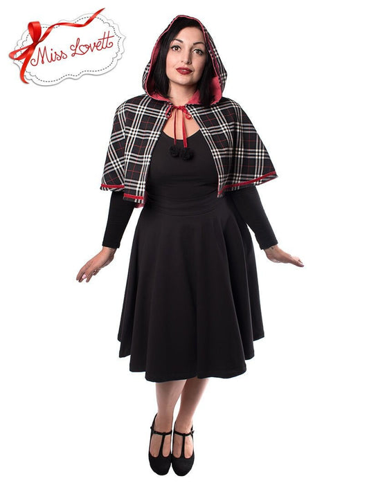 Kurzes kariertes Kapuzen Cape schwarz/rot TARTAN