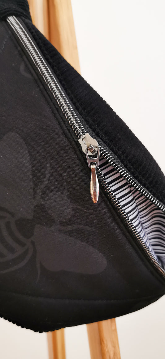 Schwarze Quilt Hipbag Bauchtasche Cross Body Bag Biene