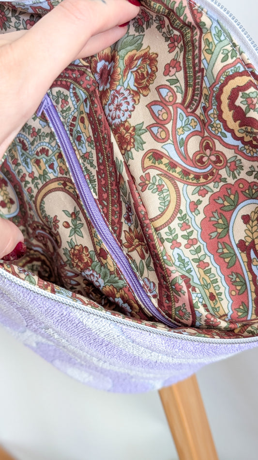 Upcycling XL Bauchtasche aus Vintage Handtuch Pastell Towel Bag Einzelstück Lila