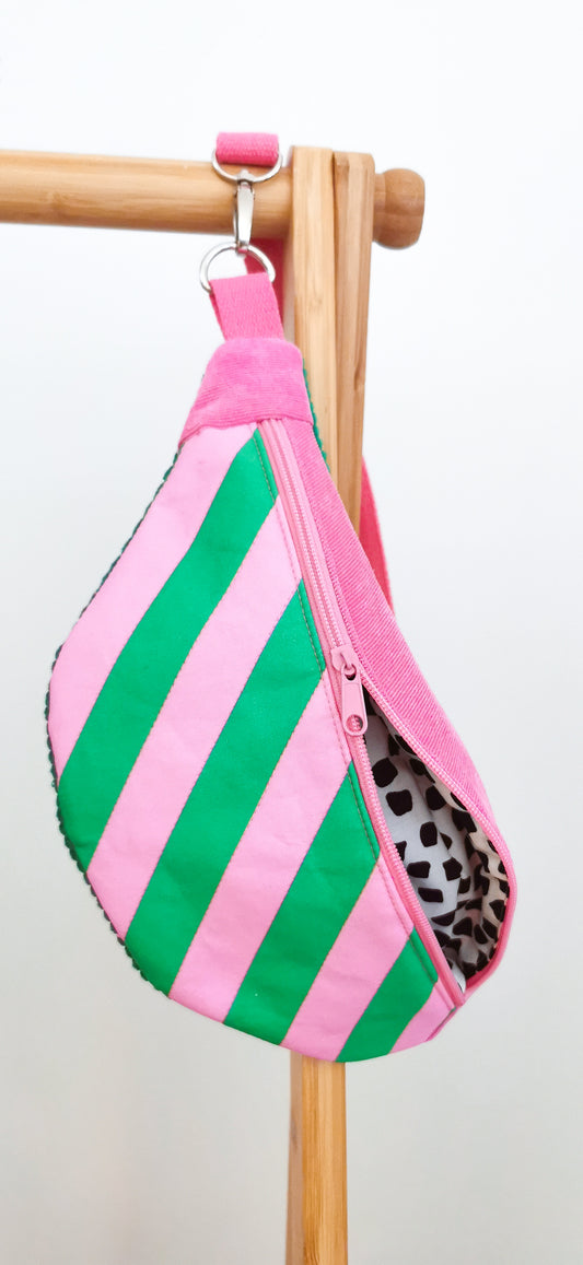 Bunte Hipbag Bauchtasche Patchwork Streifen Bag Grün/Rosa