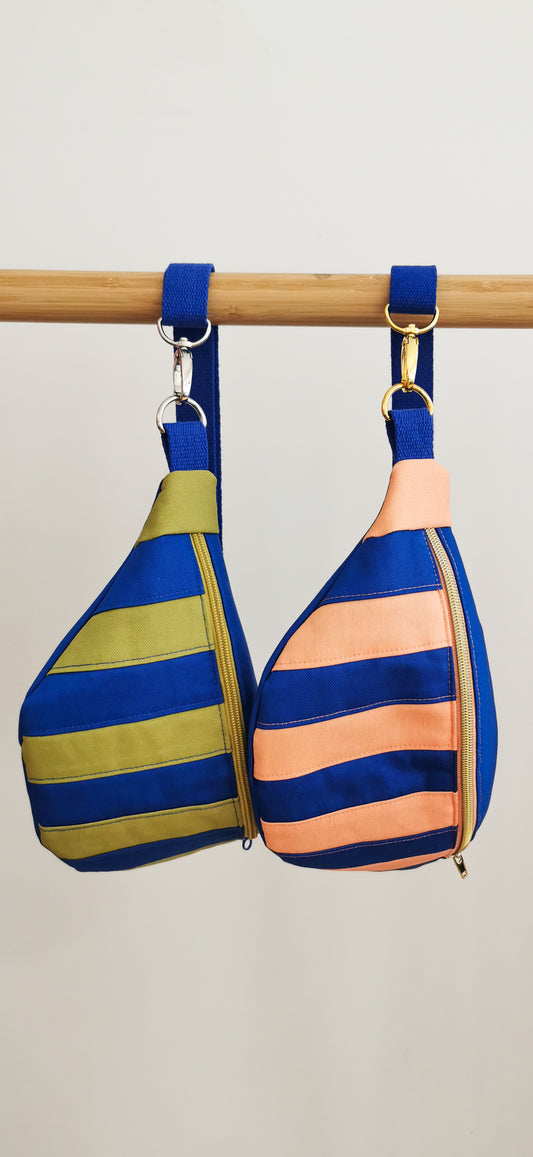 Skandi Hipbag Bauchtasche Crossbody Bag Patchwork Streifen Peach/Blau