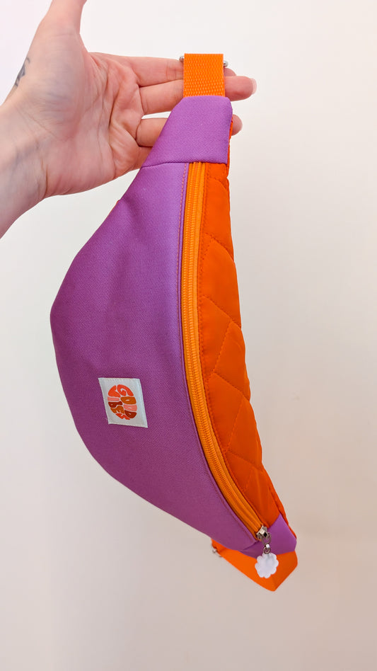 Bunte Colourblocking Hipbag Bauchtasche 70s Orange Lavendel