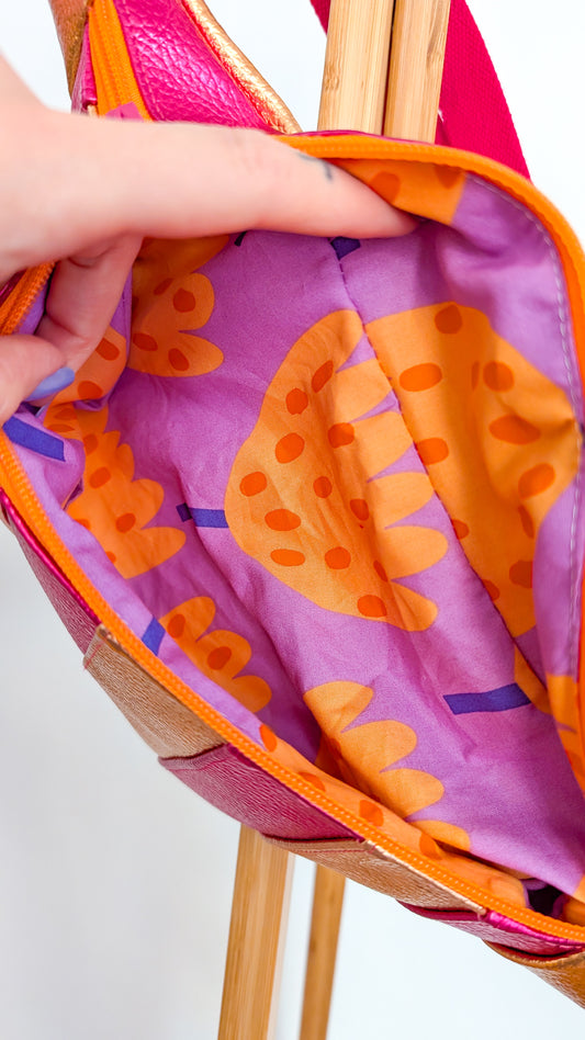 Metallic Hipbag Bauchtasche Kunstleder Streifen Orange/Pink Einzelstück