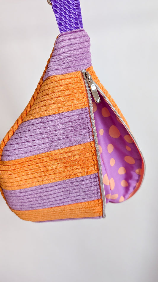 Cord Hipbag Bauchtasche Patchwork Streifen Tulip Bag Flieder/Orange