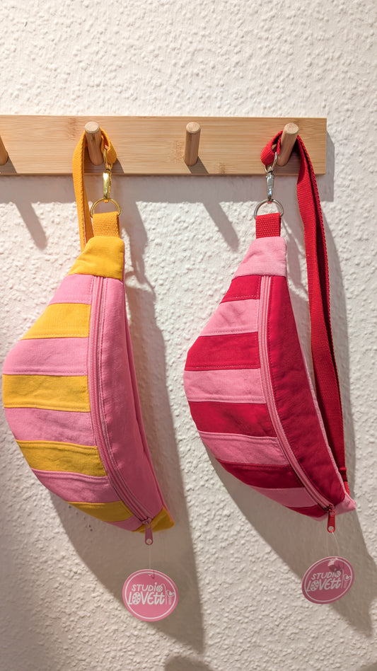 Cord Hipbag Bauchtasche Cross Body Bag Patchwork Streifen Pink/Gelb