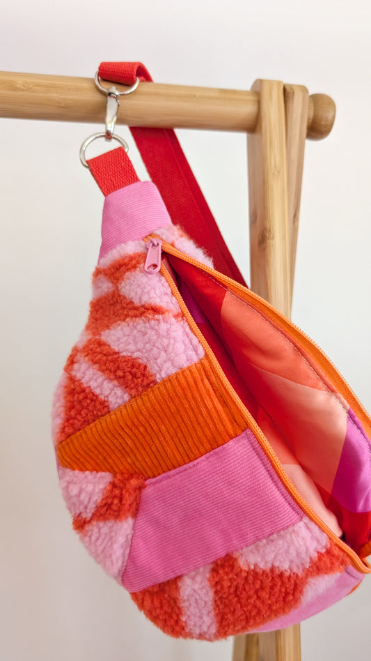 Zero Waste Hip Bag Patchwork - Bauchtasche Cord Plüsch Pink Orange Einzelstück