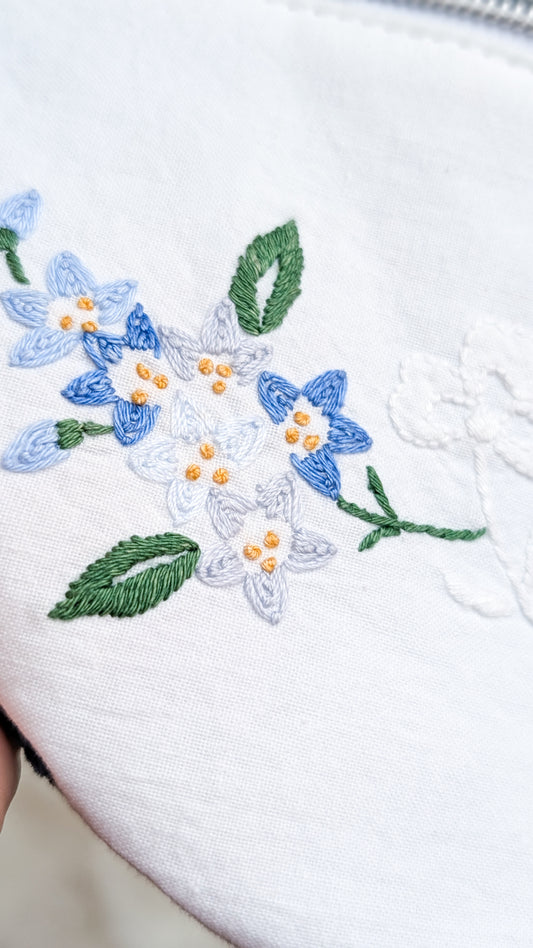 Upcycling Cord Bauchtasche Granny Hipbag Blumen Stickerei Blau