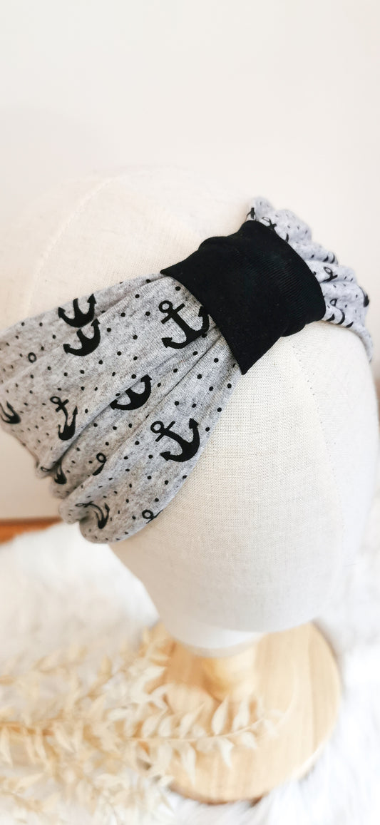 Turban Stirnband + Armstulpen Grau/Schwarz Anker