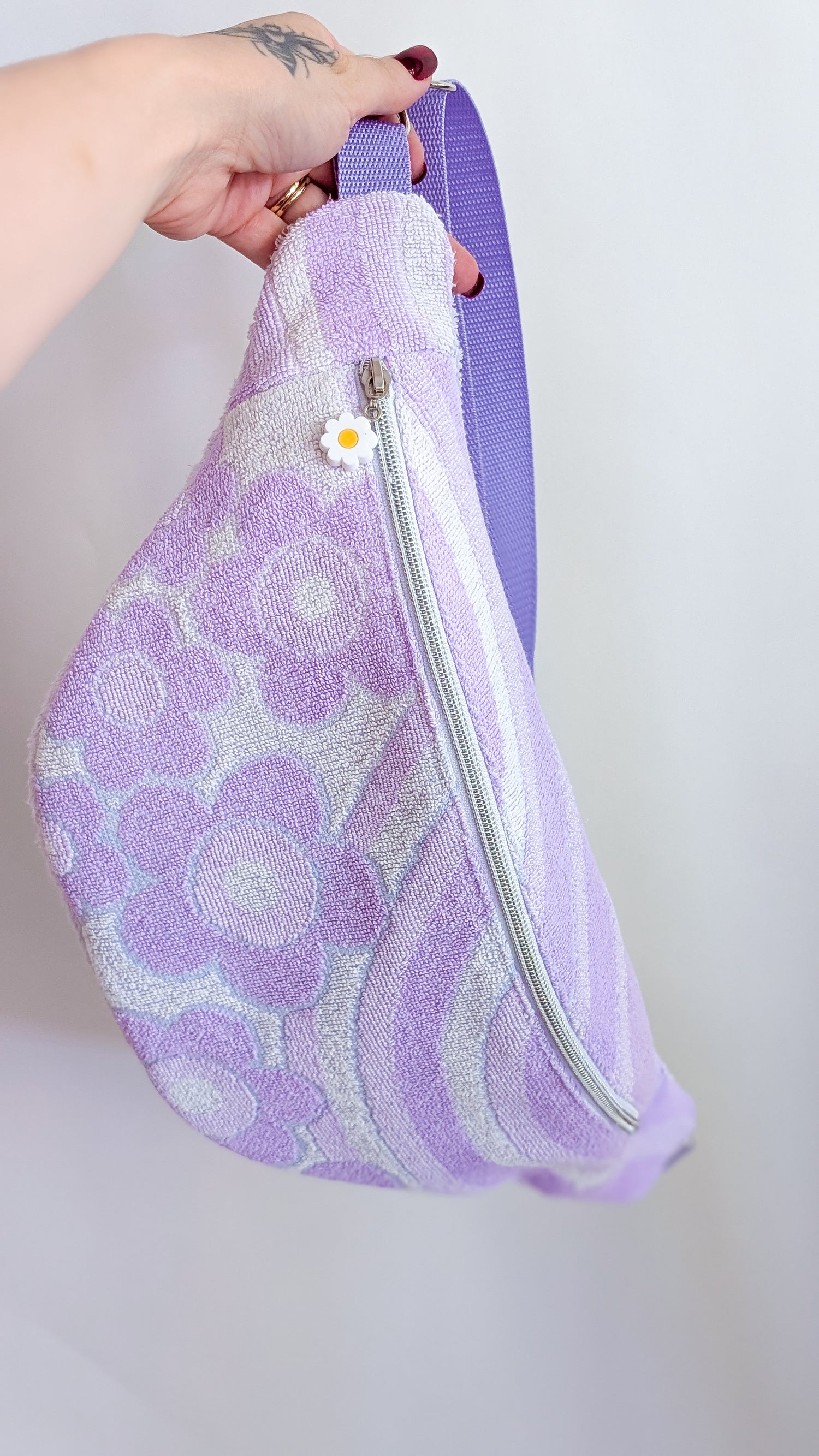 Upcycling XL Bauchtasche aus Vintage Handtuch Pastell Towel Bag Einzelstück Lila
