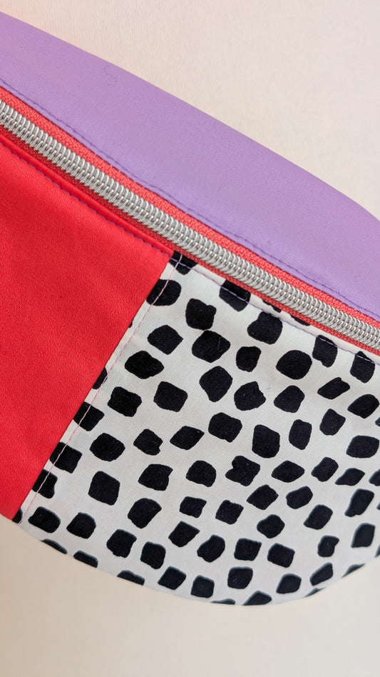 Bunte 80s Hipbag Bauchtasche Cross Body Bag Tupfen Blau Rot Pink
