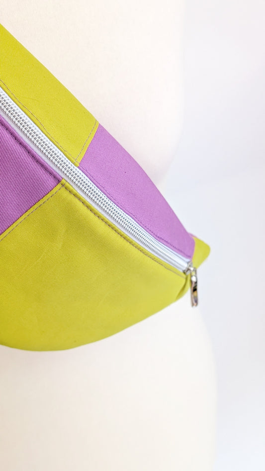 Bunte Colorblock Bauchtasche Cross Body Bag Lavendel + Chartreuse