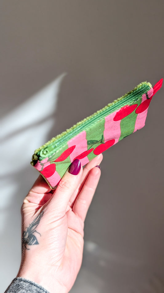 Bunte Kirschen Geldbörse Geldbeutel Cord Streifen Grün