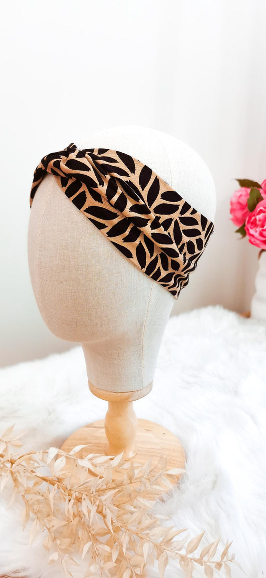 Weiches Turban Stirnband Pfirsich Schwarz Blätter Striche