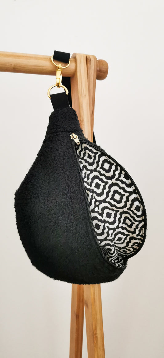 Basic Plüschis Bauchtasche Teddy Bouclé Plüsche Creme oder Schwarz