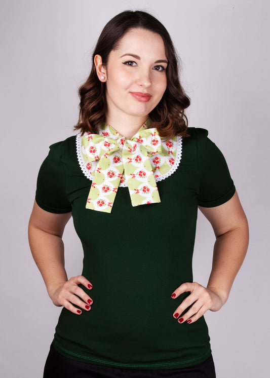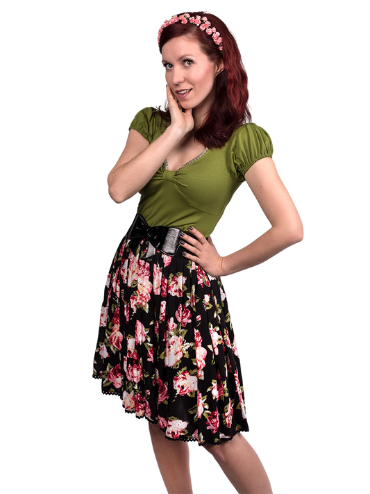 AusverkauftDunkelgrünes Rockabilly Schlupp-Shirt mit Rosen