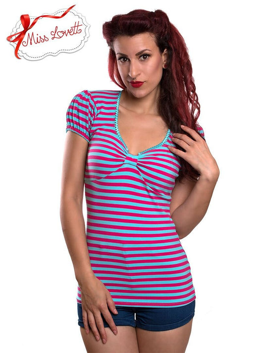 Gestreiftes Rockabilly Shirt Streifen AQUA/PINK