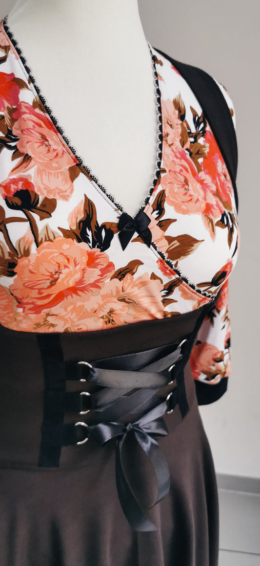 Gothic Dirndl Rockabilly Cut-Out Überkleid Braun Schnürung