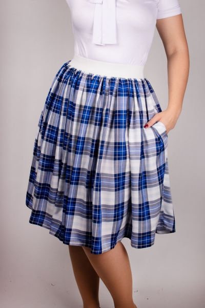 Karierter Rüschenrock Rock mit Tasche BLUE TARTAN