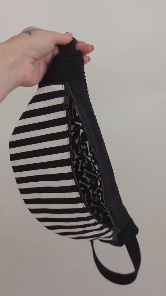 Halloween Hipbag Cord Bauchtasche Schwarz/Weiß Streifen & Knochen