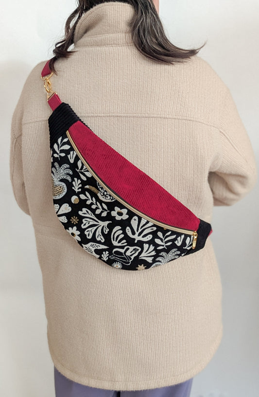 Zero Waste Bauchtasche Cord Bienen Rosé/Schwarz/Gold Einzelstück