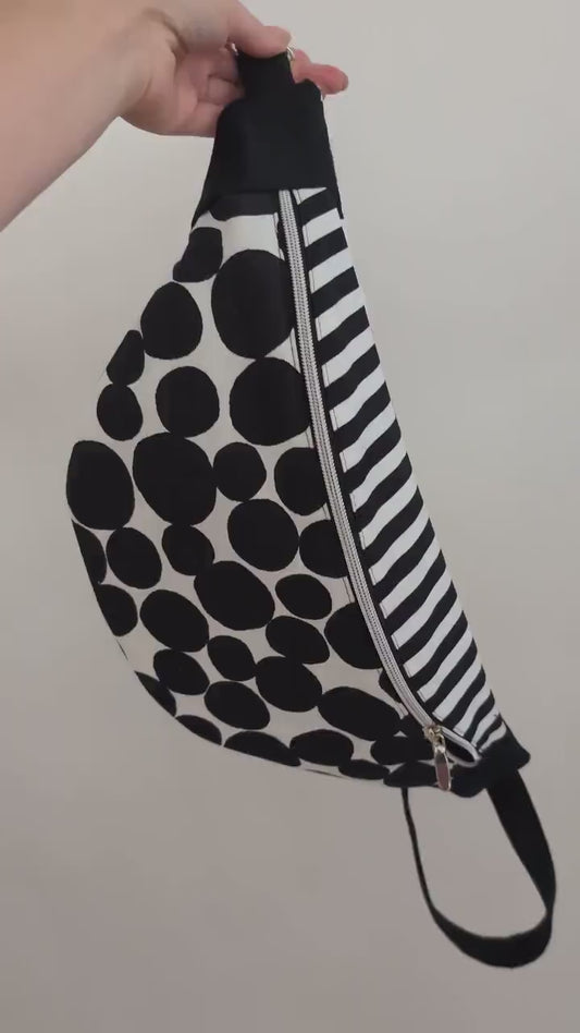 Große XL Umhängetasche Mustermix Bauchtasche Punkte Streifen Schwarz Weiß