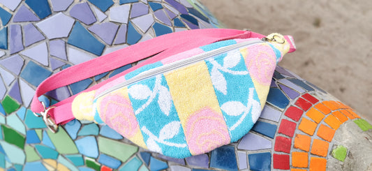 Upcycling Hipbag Bauchtasche Cross Body Bag Rosen Pastell Frottee