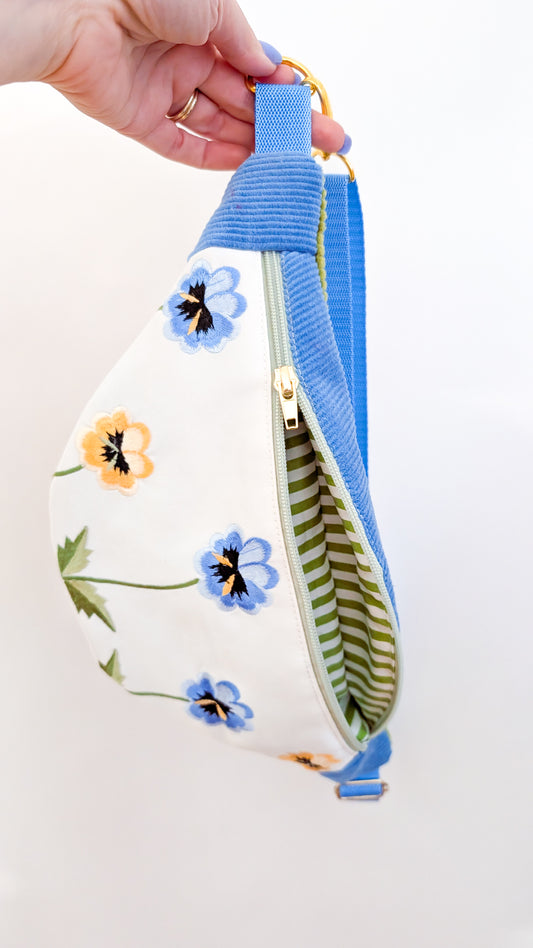 Upcycling Cord Bauchtasche Granny Pansy Bag Blumen Stickerei