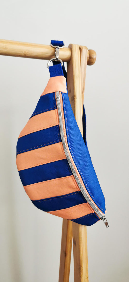 Skandi Hipbag Bauchtasche Crossbody Bag Patchwork Streifen Peach/Blau