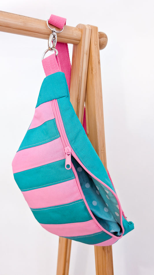 Bunte Hipbag Bauchtasche Patchwork Streifen Bag Grün/Rosa