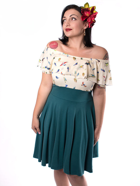Jersey Carmen Swing Kleid mit Papageien Rockabilly