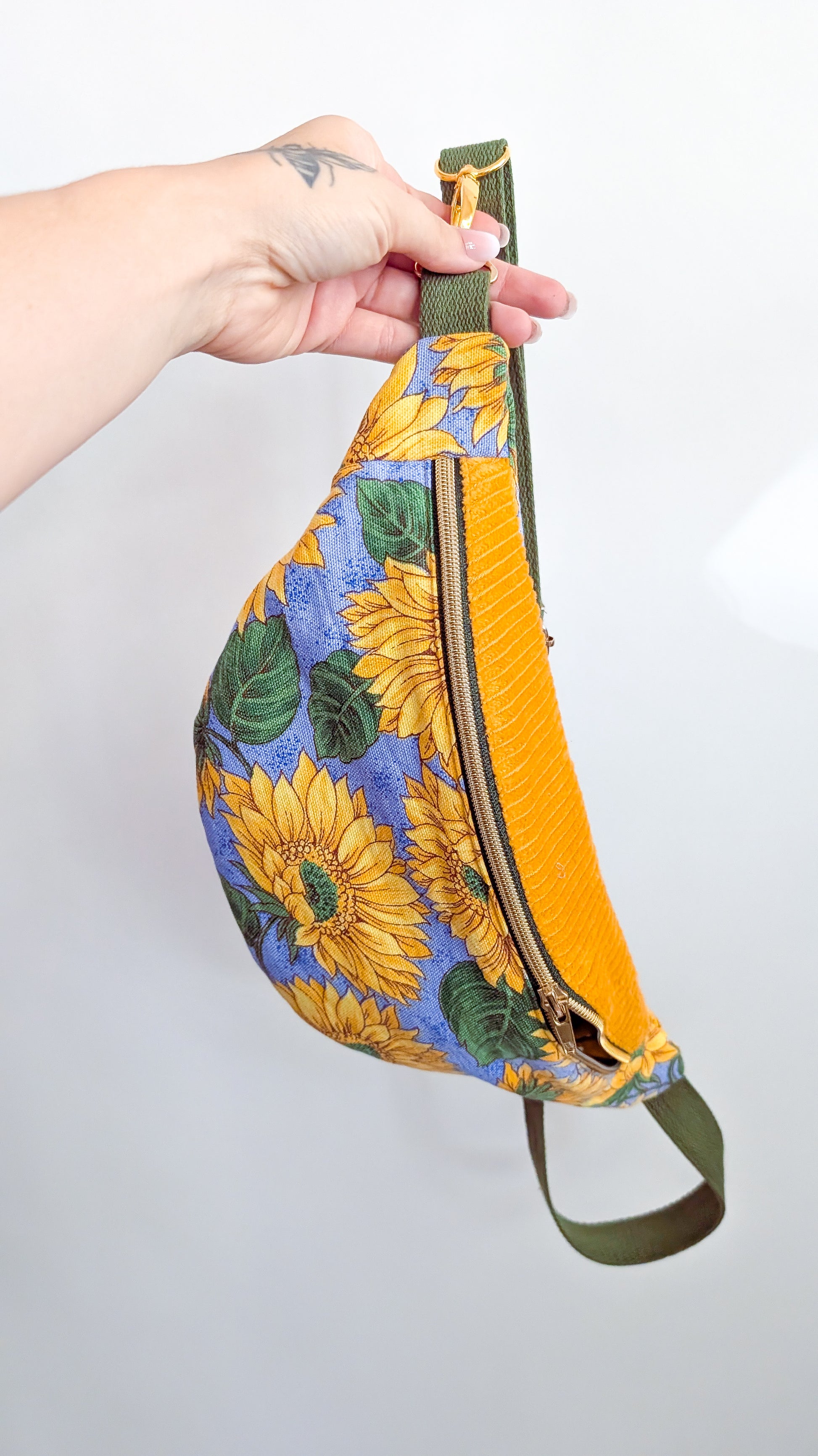 Upcycling Cord Bauchtasche Granny Sonnenblumen Hipbag