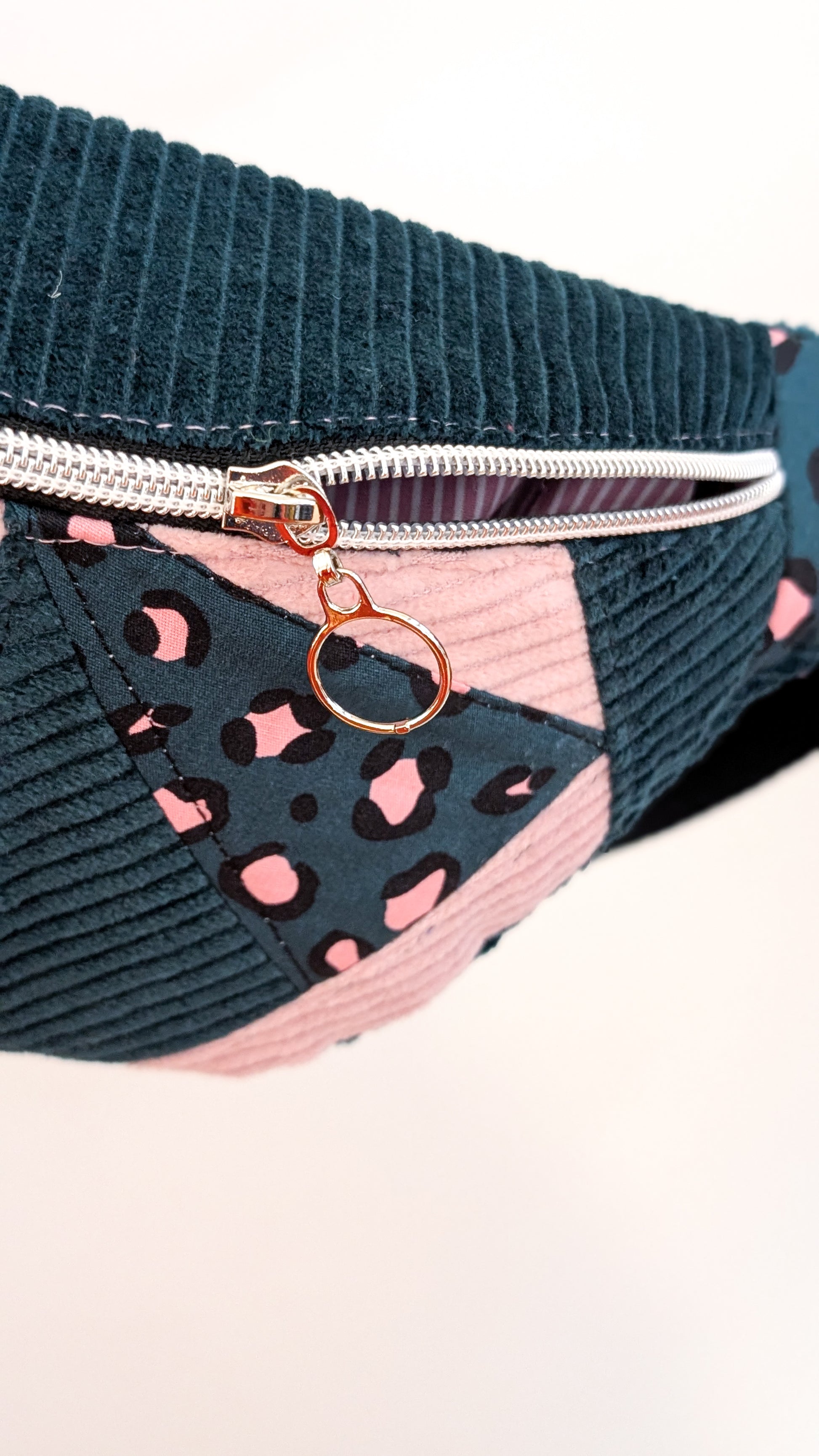 Zero Waste Bauchtasche Einzelstück Cord Rose/Petrol Leo